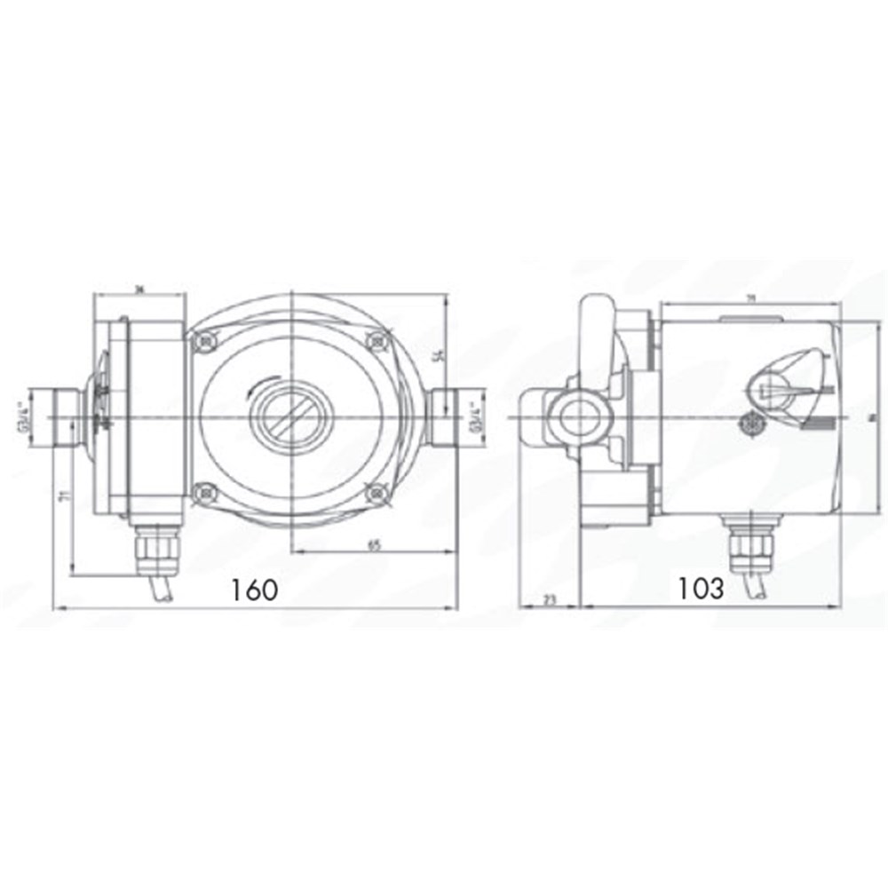 Single speed, 120W, 240V max hd 6.0m, max flow 60L/m. 3/4” BSPM outlet, unions 1/2" BSPM 160mm centre distance